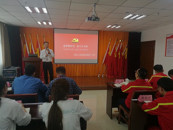 之后,由黨總支副書記于江山為大家作了一堂《追夢新時代,奮斗正當(dāng)時——萬達重工黨建工作開展情況》黨課,于副書記回顧了萬達重工黨建在起步、探索、發(fā)展、提升四個階段的發(fā)展歷程,從在發(fā)展中堅持“圍繞發(fā)展抓黨建,抓好黨建促發(fā)展”這一主線,在提升中全力打造“勇?lián)?zé)任、學(xué)習(xí)驅(qū)動、價值創(chuàng)造”型黨總支,逐步形成了“建、管、動”黨建思路方面對萬達重工黨建開展的特色亮點工作進行了講課。講課最后,于副書記說,新時代,需要我們每個黨員群眾、干部職工一起努力,學(xué)習(xí)貫徹黨的十九大精神,發(fā)揮紅旗渠精神、焦裕祿精神和愚公移山精神,立足本職崗位,做出彩優(yōu)秀黨員,筑最美中國夢!會議結(jié)束后,全體黨員繳納了黨費。