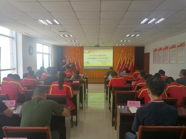 2019年8月22日下午,鄭州萬達重工股份有限公司黨總支在綜合行政樓二樓黨員活動室開展了2019年8月份“開展志愿服務,樹立黨員形象”主題黨日活動。黨總支全體黨員、入黨積極分子、入黨申請人共計40余人參加了此次活動。活動由黨總支組織委員袁希海主持。