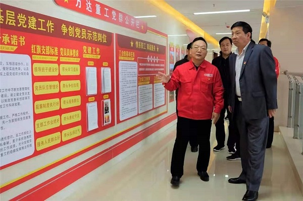 巡回指導組一行參觀了萬達重工二樓黨員活動室、黨群活動紅色長廊、運動健身室等一千多平方米的黨群基地。何書記向參觀組一行簡要介紹了萬達重工“不忘初心、牢記使命”主題教育及黨建工作開展情況。巡回指導組趙鴻瑞同志還對萬達重工黨總支“不忘初心、牢記使命”開展情況檔案進行了指導、查看。