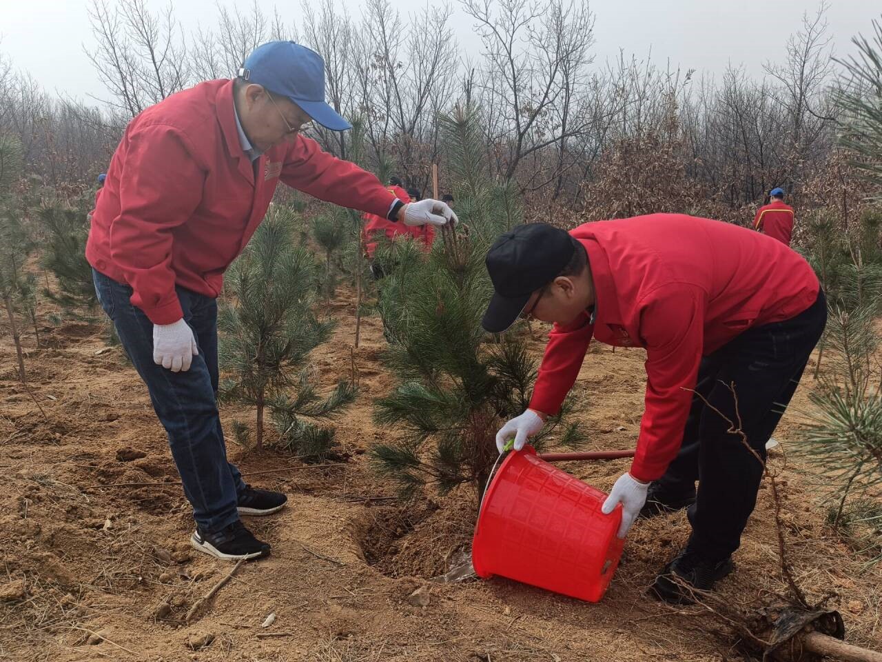 一桶清水,灌溉希望,一棵樹苗,承載未來。植樹現(xiàn)場黨旗、司旗、黨小組旗、團(tuán)旗在風(fēng)中迎風(fēng)飄揚(yáng),植樹活動中,大家熱情高漲、干勁十足,全體參加人員發(fā)揚(yáng)不怕苦、不怕臟、不怕累的精神,分工協(xié)作、揮鍬鏟土、扶樹填坑、踏土夯苗、提水澆灌,有條不紊地完成植樹各個環(huán)節(jié)。經(jīng)過大家一上午的共同努力,一株株新栽種的樹苗迎風(fēng)挺立,為大地增添了勃勃生機(jī)。