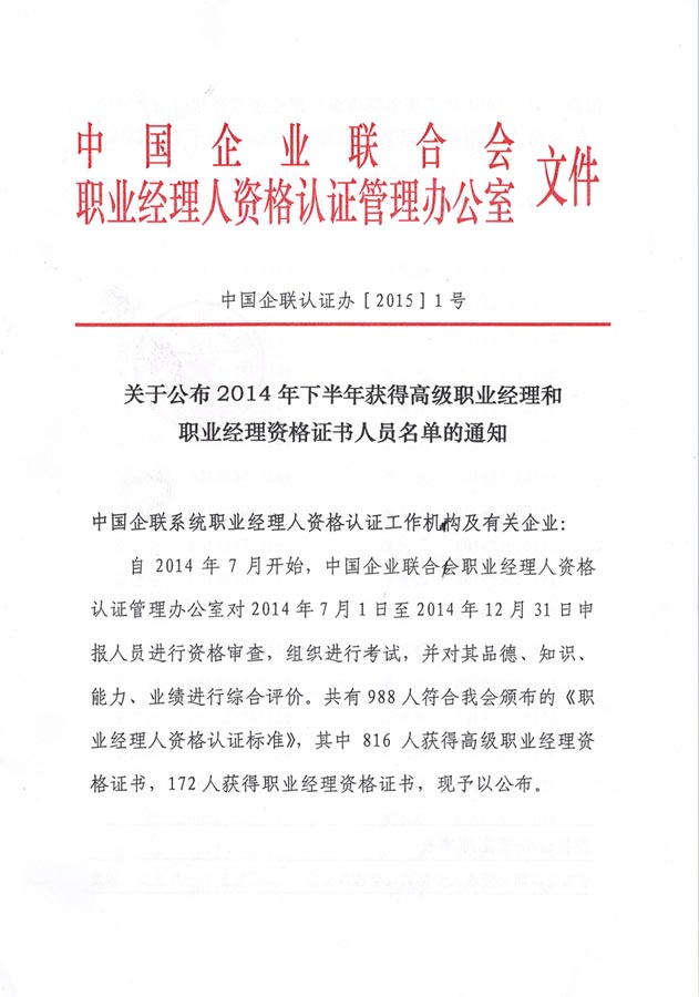 熱烈祝賀我公司劉保國等6位同志獲得職業經理人資格證書