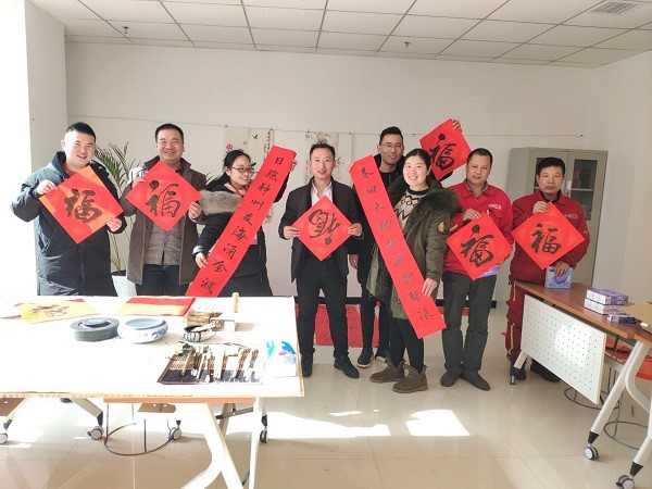 2019/01/24 2305 2019年1月22日中午,由股份公司工會辦主辦,宣傳部承辦的新春佳節 寫福送福活動在綜合行政辦公樓二樓書畫閱覽室正式啟動。 當天中午,在工會主席于江山的帶領下,股份公司書法愛好者王英豪、劉松橋、靳奎、梁啟超、張珊珊等人在書畫閱覽室擺開書案,攤開紅紙,揮毫潑墨,寫福字、寫對聯,紅彤彤的福字和對聯將現場點綴出濃濃的年味兒。...