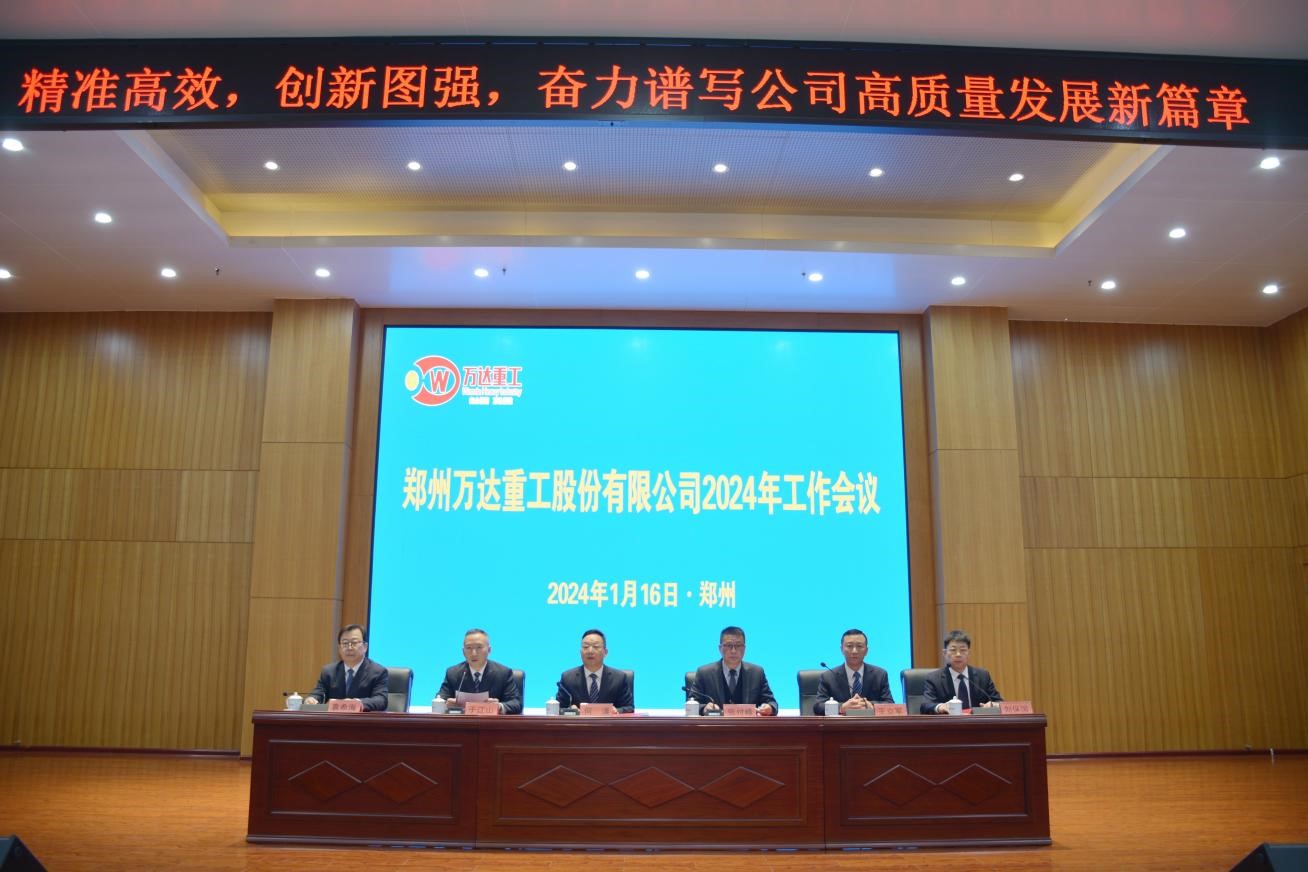 2024/01/17 1684 2024年1月16日,鄭州萬達重工股份有限公司2024年工作會議在公司多功能廳勝利召開。股份公司黨委書記、董事長何清,股份公司董事、總經理張付峰,監事會主席、工