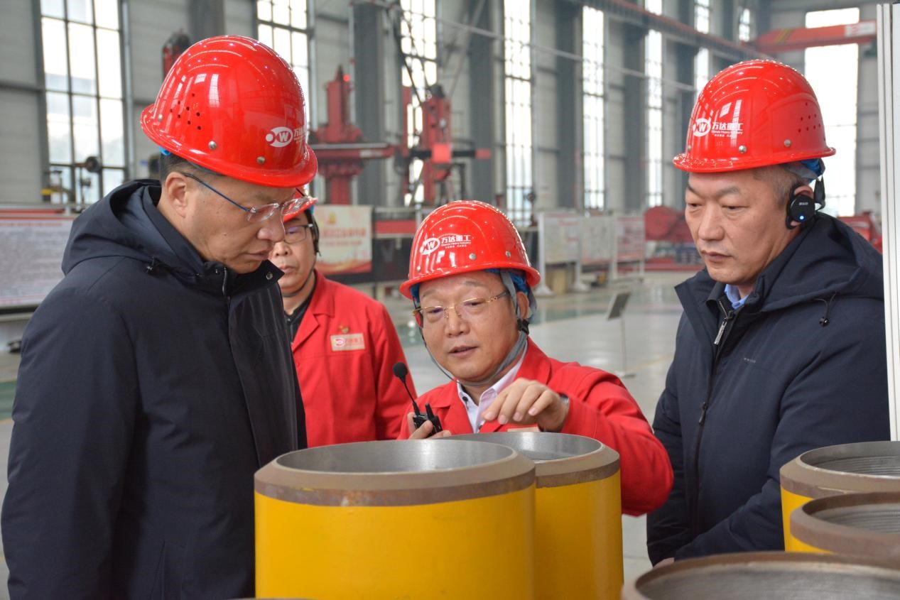 2024/01/31 2733 2024年1月30日上午,鄭州航空港經濟綜合實驗區管委會魏學彬副主任、區科技工信局局長禹定國一行蒞臨萬達重工調研督導企業安全生產工作,銀河辦事處黨工委書記趙淼陪