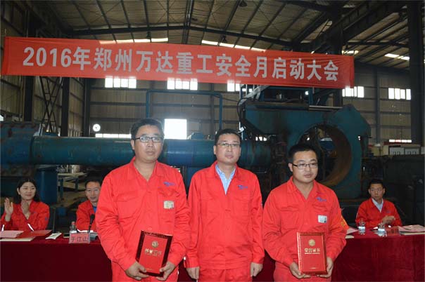 早上八點整,萬達重工“2016安全月啟動大會”在公司公司一線----生產(chǎn)車間圓滿隆重召開。公司董事長、書記何清做《強化安全發(fā)展理念、提升全員安全素質(zhì)》講話,公司總經(jīng)理張付峰宣讀了《2016年“公司安全月”活動實施方案》,公司總工程師、安全領(lǐng)導(dǎo)小組執(zhí)行組長袁希海作《公司上半年安全報告》講話,公司控股公司、子公司、生產(chǎn)方陣、營銷方陣、行政方陣分別派代表做會議發(fā)言。在安全月啟動大會上,對公司2015年7月-2016年6月安全生產(chǎn)管理優(yōu)秀班組(機修電工班、無損檢測班)進行了表彰,并且優(yōu)秀班組代表進行了經(jīng)驗分享。