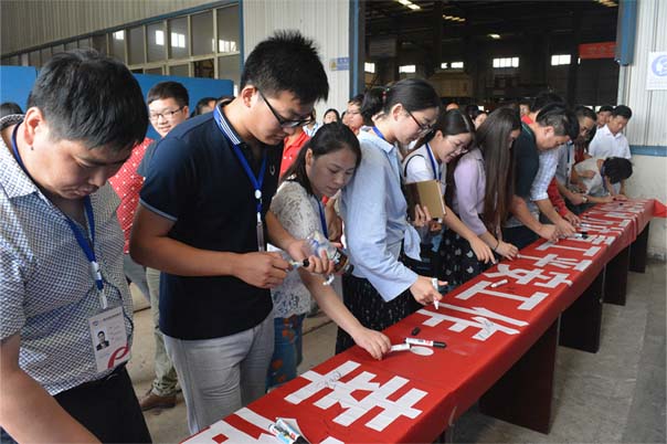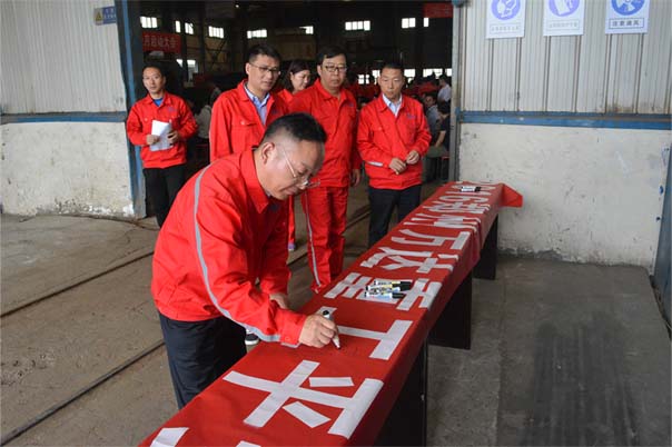 會后,公司領(lǐng)導(dǎo)及全體員工在“2016鄭州萬達重工平安工作•幸福生活”安全條幅上簽字留念。