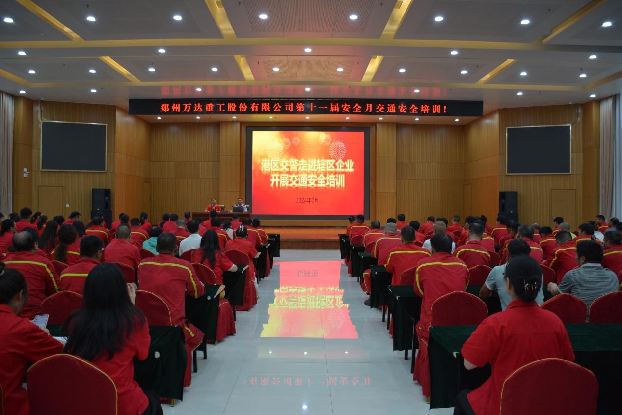 為進一步提升公司全員交通安全的法制意識、安全意識、文明意識,營造遵紀守法的良好氛圍。按照股份公司第十一屆安全月活動安排,2024年7月16日晚,鄭州萬達重工股份有限公司組織全員開展了交通安全教育培訓活動。此次交通安全教育培訓專門邀請了鄭州市公安局航空港分局交警大隊二中隊副中隊長周國穎為全體員工開展了一堂生動的交通安全知識教育培訓。