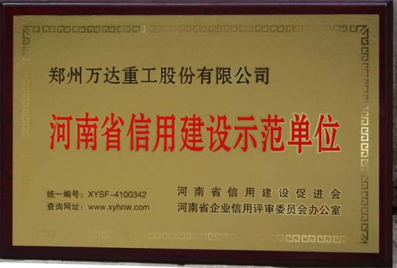 熱烈祝賀鄭州萬達(dá)重工股份有限公司通過了“河南省信用建設(shè)促進(jìn)會(huì)”和“河南省企業(yè)信用評(píng)審委員會(huì)辦公室”共同組織的“河南省信用建設(shè)示范單位”復(fù)審認(rèn)證,被認(rèn)定為“河南省信用建設(shè)示范單位”榮譽(yù)稱號(hào)!