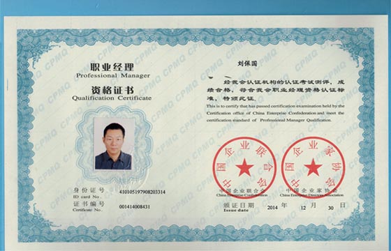 熱烈祝賀我公司劉保國等6位同志獲得職業(yè)經(jīng)理人資格證書