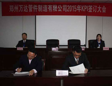 2016/01/28 390 鄭州萬達(dá)管件制造有限公司2015年KPI簽訂會(huì)于1月30號(hào)在公司行政區(qū)會(huì)議室隆重舉行,公司班長以上所有管理人員參加了此次簽訂會(huì)議。簽訂會(huì)分為三級(jí)簽訂,即:董事長與總經(jīng)理簽訂、總經(jīng)理與公司各高管簽訂、公司各高管與分管的各部門負(fù)責(zé)人簽訂,近期,各部門負(fù)責(zé)人將部門的KPI指標(biāo)進(jìn)行分解,與各班組及相關(guān)崗位簽訂目標(biāo)責(zé)任書,達(dá)到千...